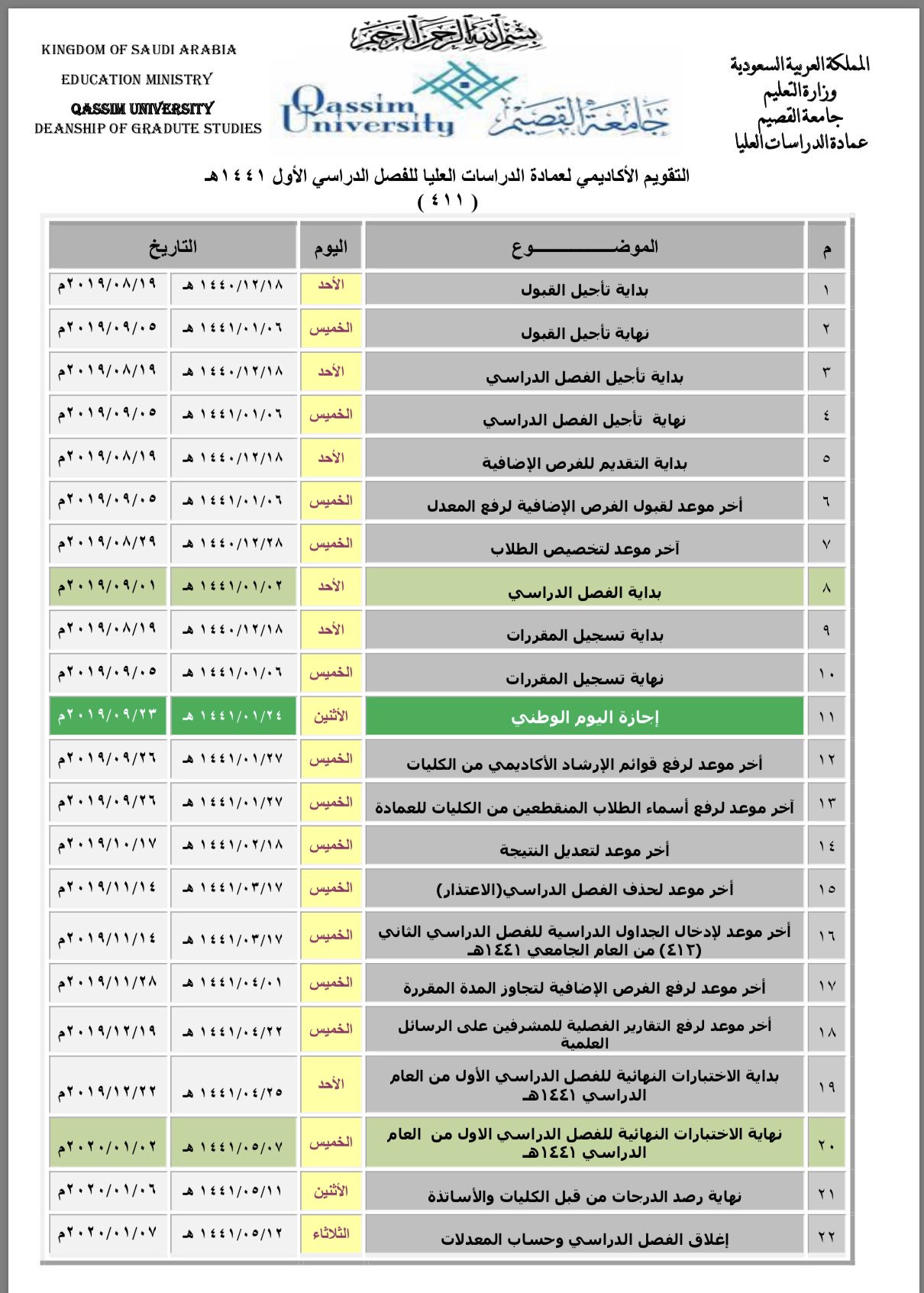 جامعة القصيم On Twitter تعلن جامعة القصيم ممثلة في عمادة الدراسات العليا عن فتح باب القبول في برامج الدراسات العليا برسوم دراسية خلال الفترة من 1440 6 6هـ حتى تاريخ 1440 6 20هـ في مرحلتي الماجستير والدكتوراه
