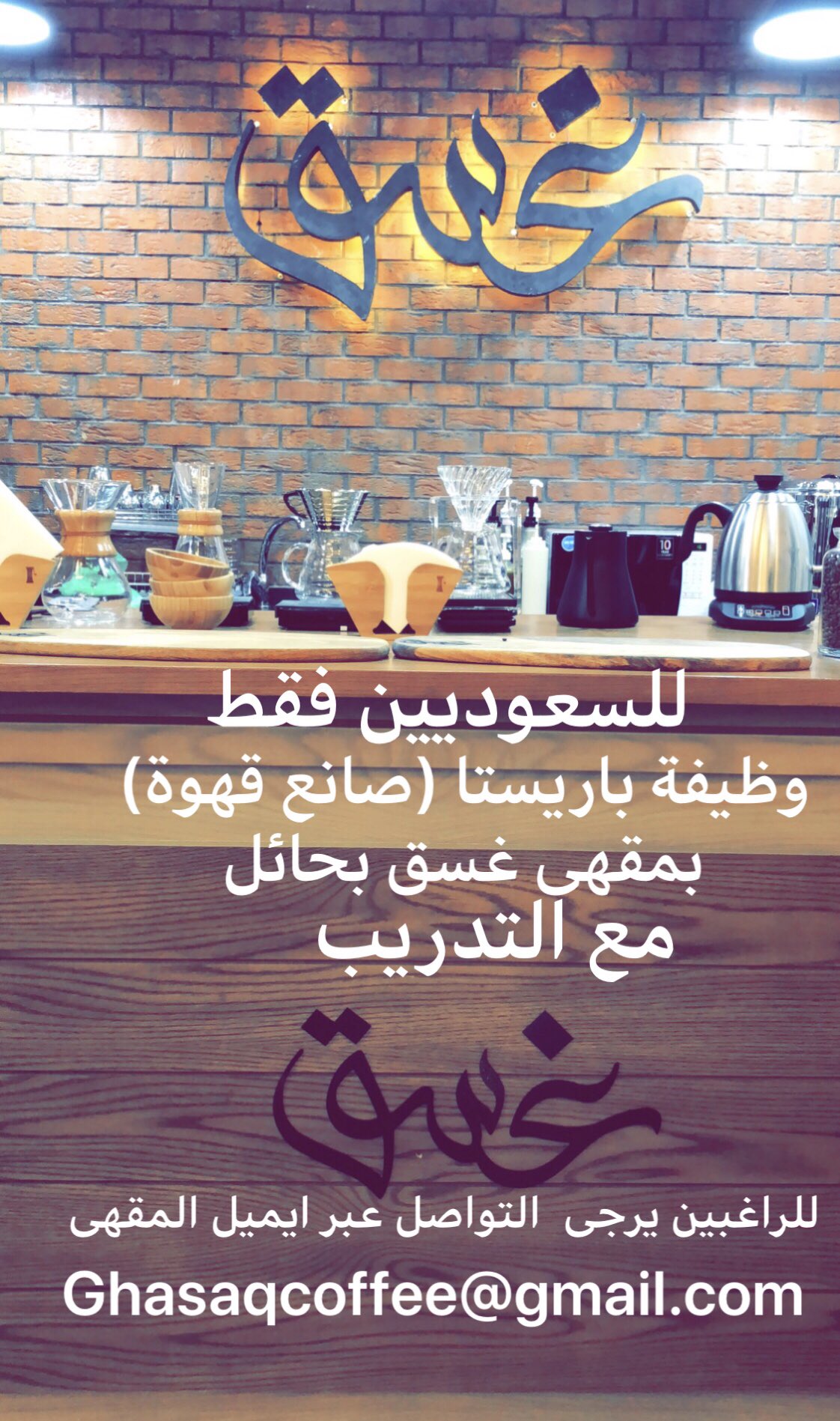 غـسـق En Twitter للسعوديين فقط وظيفة باريستا صانع قهوة بدوام جزئي في حائل للراغبين يرجى التواصل عبر بريد المقهى Ghasaqcoffee Gmail Com وظائف Https T Co 3ve1zxxhip