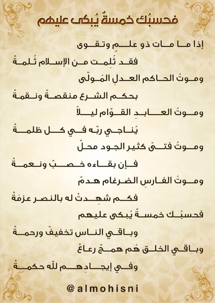 قال الشاعر حسبك خمسة ي بكى عليهم تدوينات تلاميذية و طلابية Facebook
