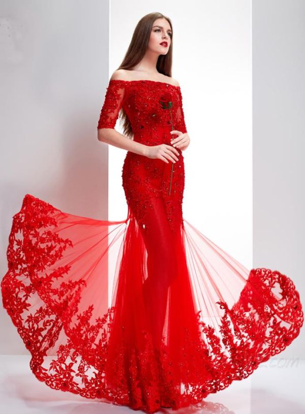 فساتين دانتيل احمر 2020 موقع المحيط