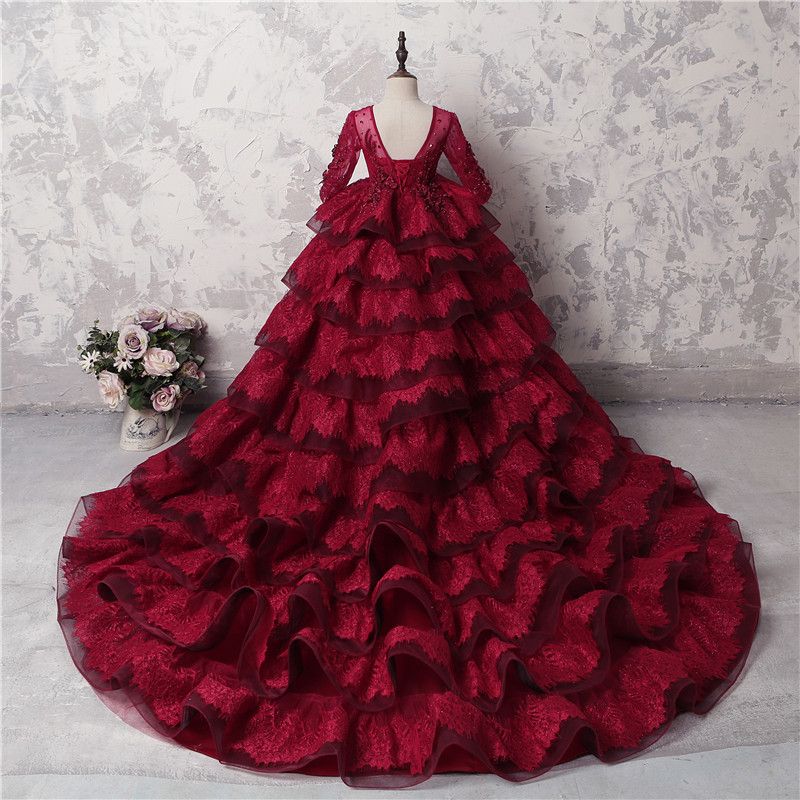 مدهش متعدد الطبقات بنات مهرجان أثواب الظلام الأحمر الرباط طويل الأكمام يزين الخرز زهرة فتاة فساتين ل فستان الزفاف قطار طويل حزب 2020 من Sexypromdress 409 26ر س موبايل Dhgate