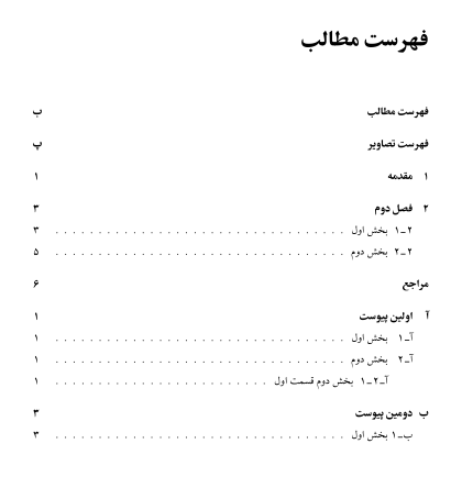 تنظیم فرمت فهرست مطالب در لاتک پرسش و پاسخ پارسی لاتک